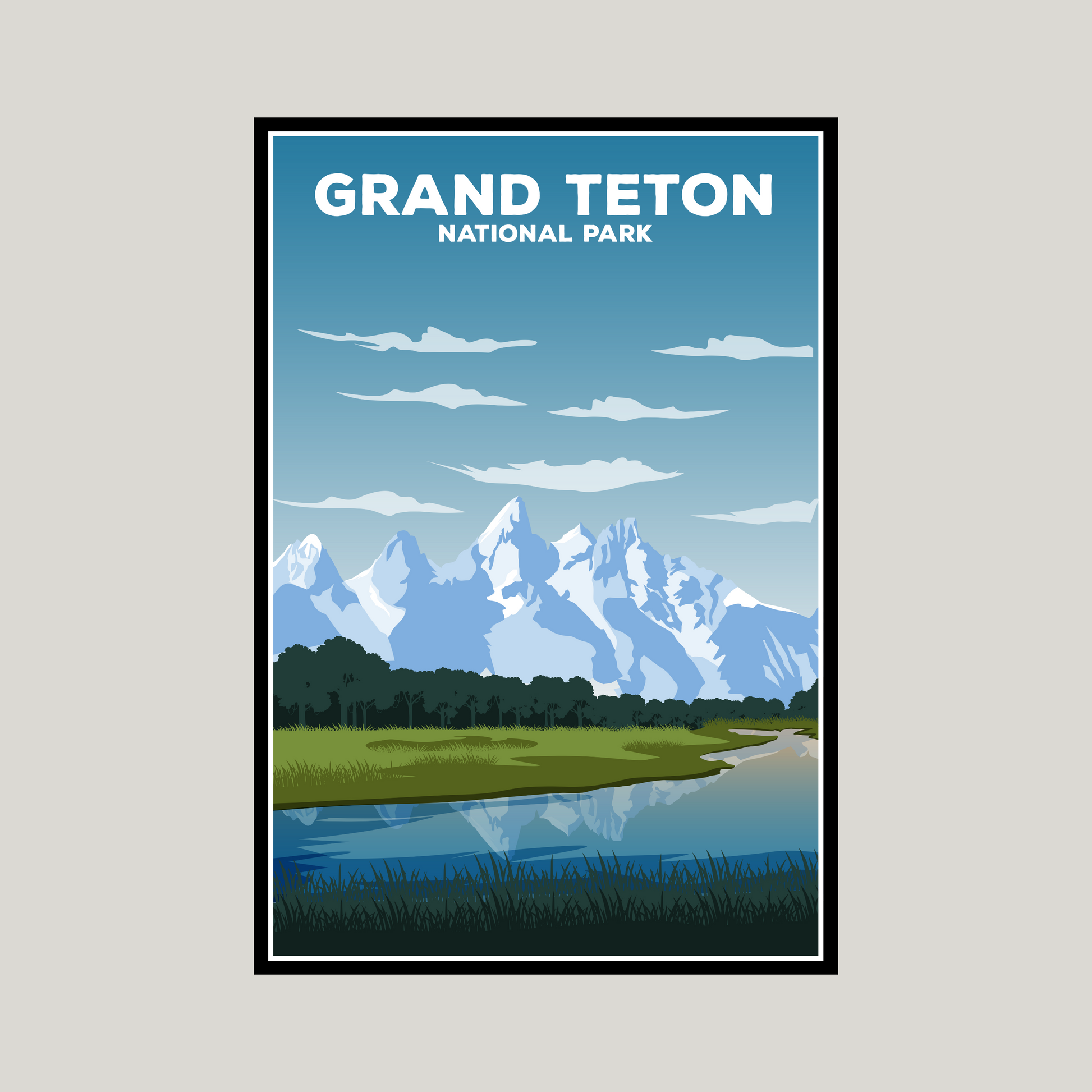 This year, I was lucky enough to go see the Teton Mountain Range. If you have been there, you know how immense the mountains are, jutting out of the earth and reaching for the sky. This poster is modeled after the view of the Grand Tetons from Jenny Lake!